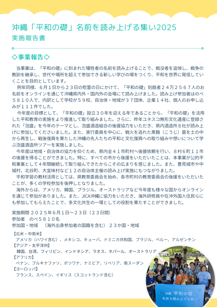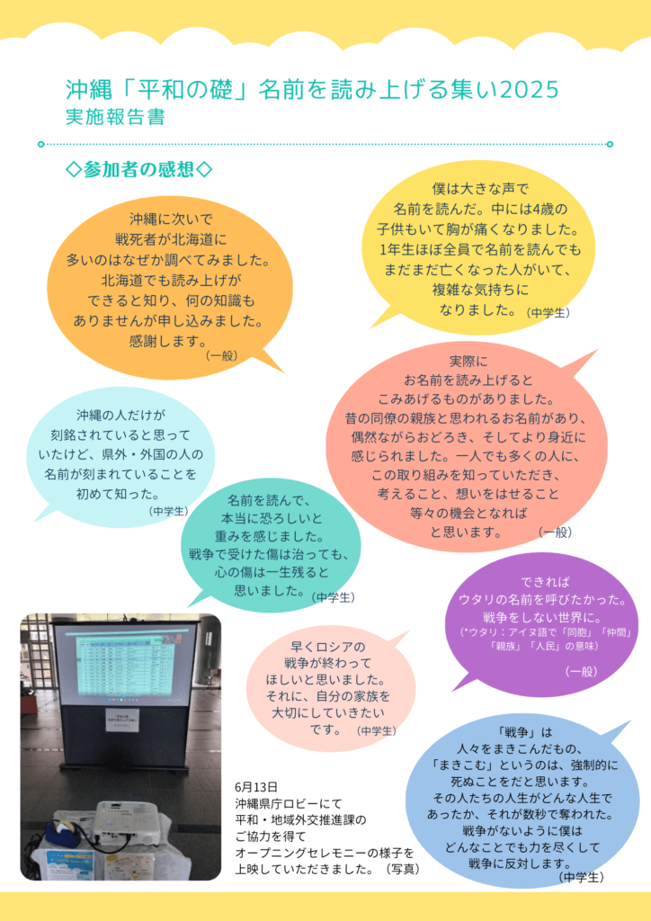【実施報告書】沖縄「平和の礎」名前を読み上げる集い2025
